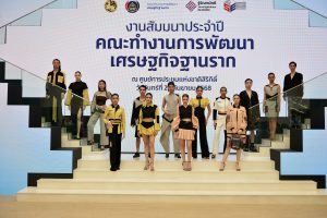 ภายในงาน ได้จัดแสดงผลงานสร้างสรรค์จากโครงการ Creative Young Designer Season 5 โดยคณาจารย์และนักศึกษาคณะอุตสาหกรรมสิ่งทอและออกแบบแฟชั่น ได้ร่วมนำเสนอแนวคิดการพัฒนาผลิตภัณฑ์ผ้าทอชุมชนบ้านหนองลิง จังหวัดสุพรรณบุรี ผ่านการใช้ “เส้นใยใบอ้อย” ซึ่งเป็นวัสดุเหลือทิ้งจากภาคการเกษตร มาต่อยอดเป็นเส้นใยสิ่งทอ สื่อถึงการให้คุณค่าใหม่ (Upcycling) และการสร้างสมดุลระหว่างแฟชั่นกับสิ่งแวดล้อม