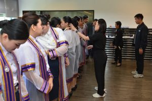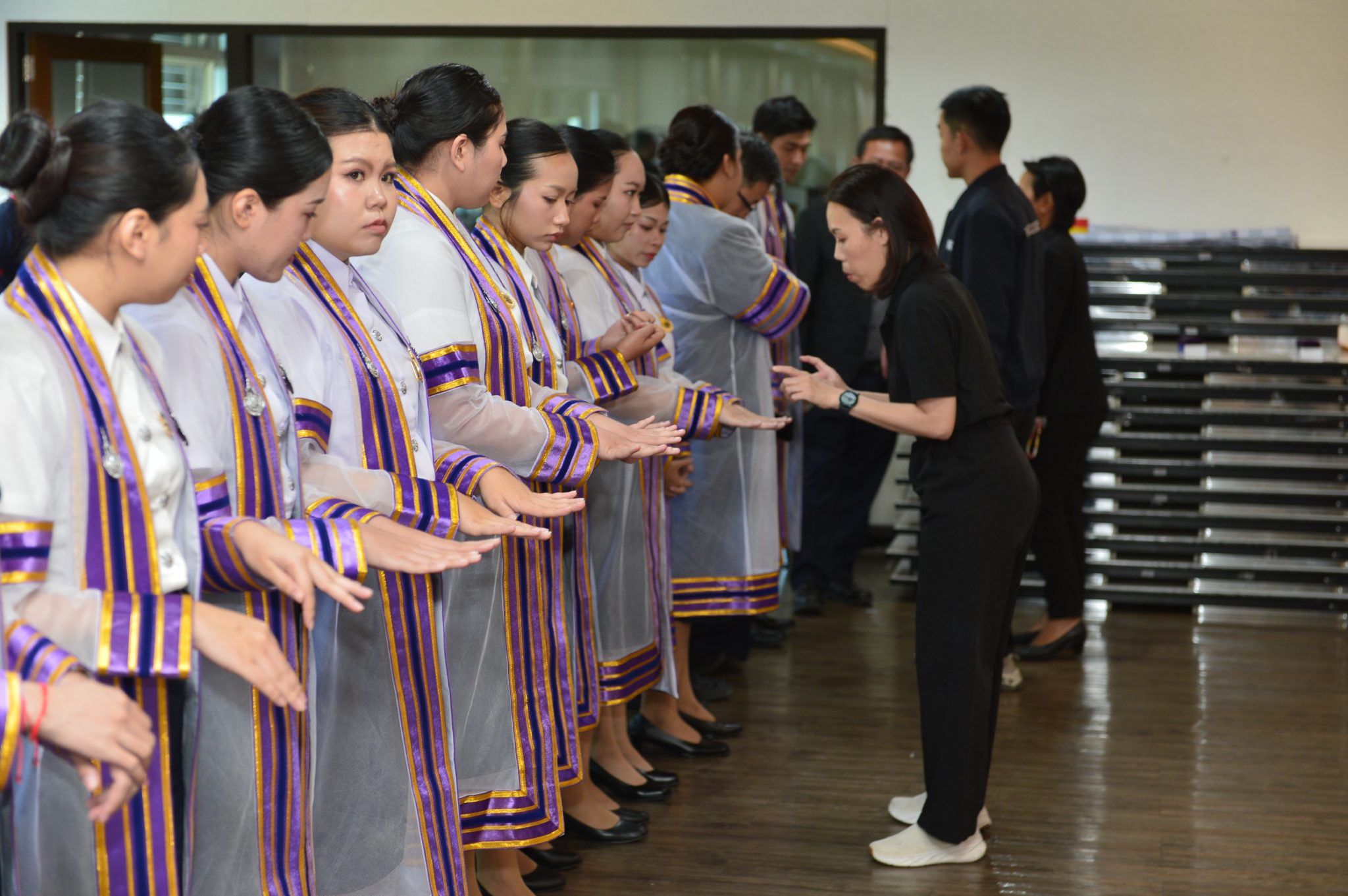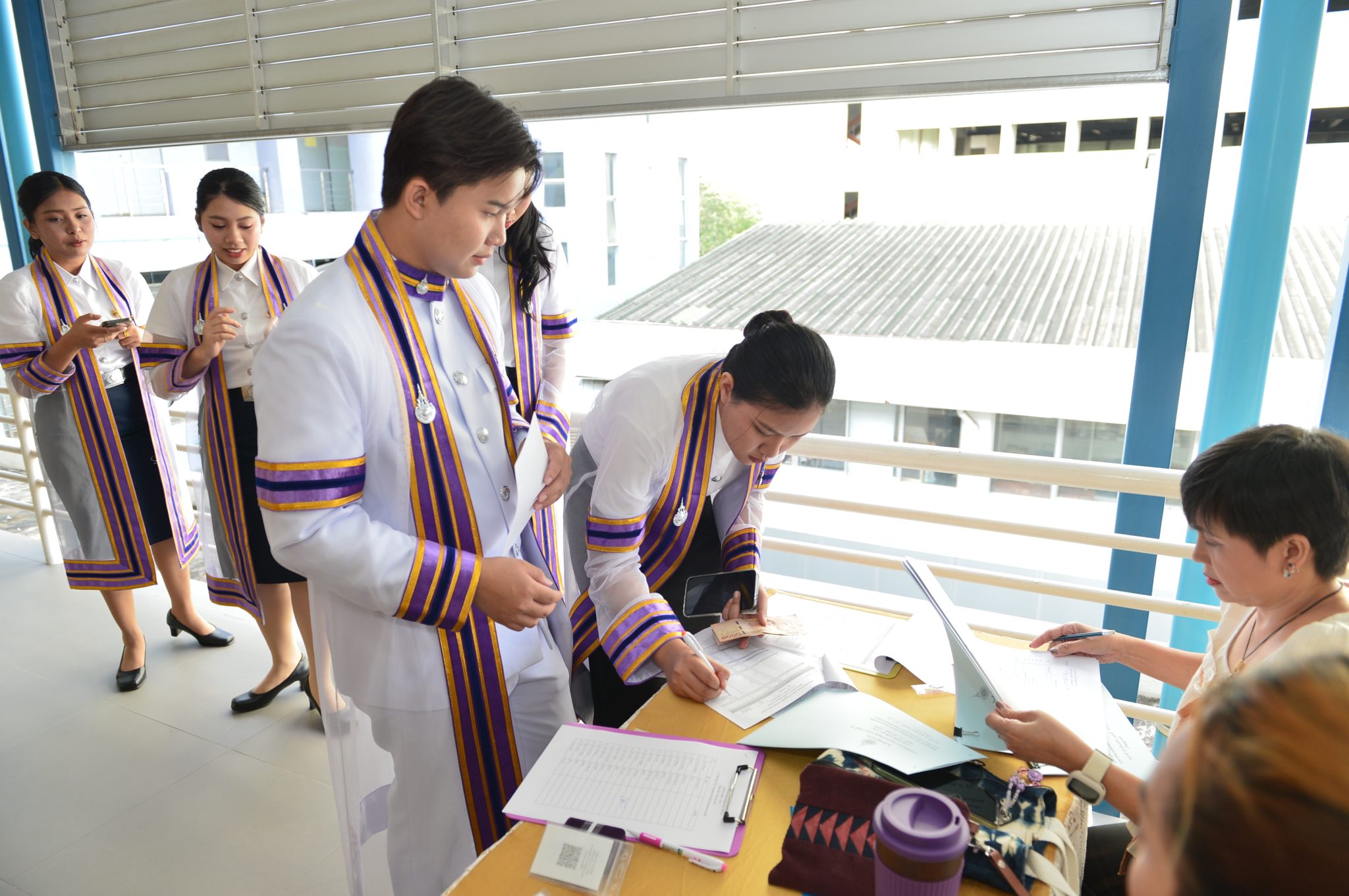โดยได้รับเกียรติจากคณะผู้บริหาร คณาจารย์ เจ้าหน้าที่ สโมสรนักศึกษา และได้รับเกียรติจากอาจารย์ชัยธวัช ตุ่มมะ เข้าร่วมดูแลและให้คำแนะนำแก่เหล่าบัณฑิตอย่างใกล้ชิด โดยเน้นย้ำถึงความถูกต้องในการปฏิบัติ ความมีระเบียบวินัย และความสง่างามตามแบบแผนของพิธีพระราชทานปริญญาบัตร ซึ่งถือเป็นเกียรติสูงสุดและก้าวสำคัญของความสำเร็จในชีวิตการศึกษา