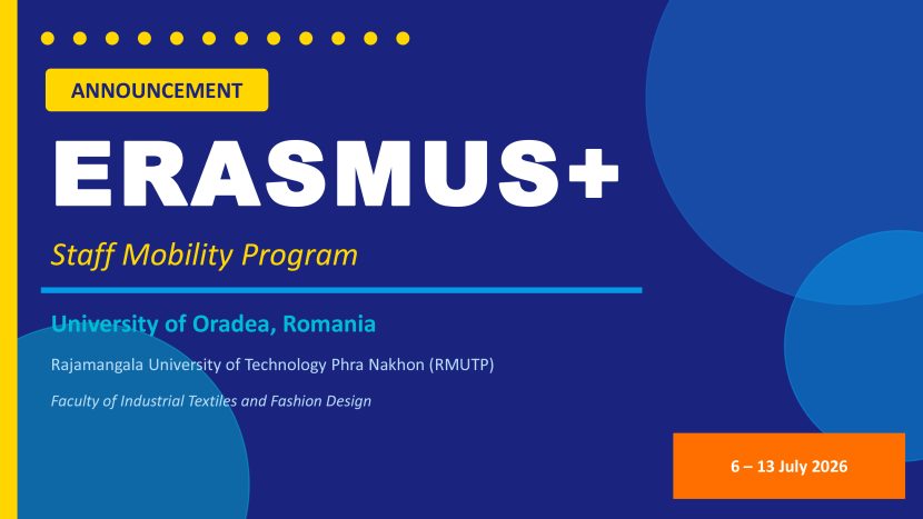 Announcement: Erasmus+ Staff Mobility Program at the University of Oradea The Faculty of Industrial Textiles and Fashion Design, Rajamangala University of Technology Phra Nakhon, invites staff members to apply for the Erasmus+ Staff Mobility Program at the University of Oradea, Romania. Please refer to the attached document for further โครงการ Erasmus+ Staff Mobility ณ University […]