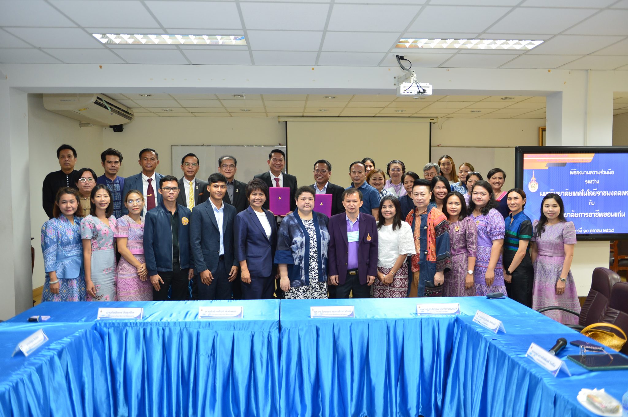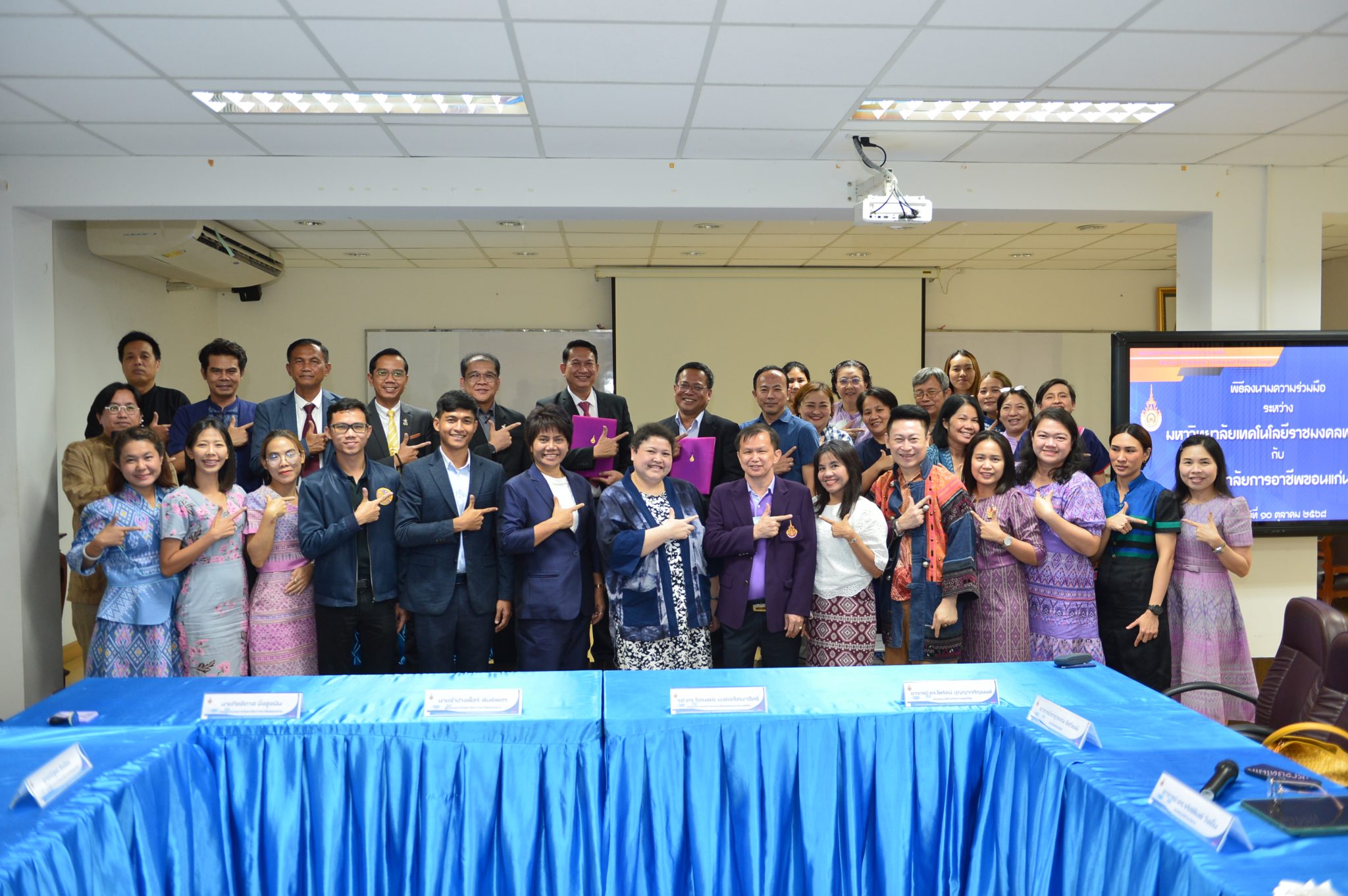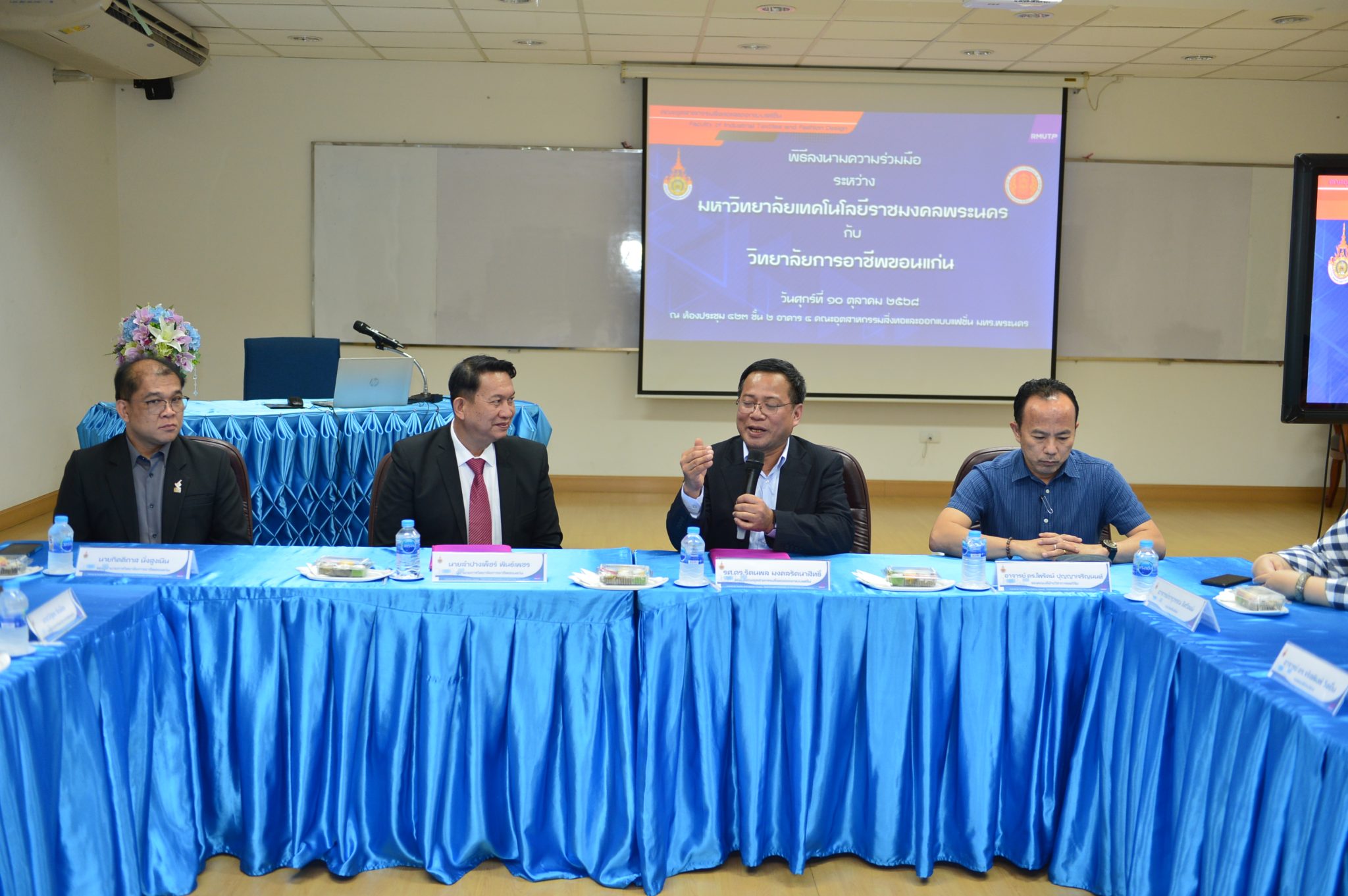 วันที่ 10 ตุลาคม 2568 รศ.ดร. รัตนพล มงคลรัตนาสิทธิ์ พร้อมด้วยรองคณบดีฝ่ายต่างๆ ตลอดจนคณาจารย์และเจ้าหน้าที่ให้การต้อนรับ ผอ.ลำปางเพ็ชร์ พันธ์เพชร ทีมบริหาร คณาจารย์ จากวิทยาลัยการอาชีพขอนแก่น เพื่อลงนามความเข้าใจ (MOU) ระหว่างคณะอุตสาหกรรมสิ่งทอและออกแบบแฟชั่น มหาวิทยาลัยเทคโนโลยีราชมงคลพระนคร และวิทยาลัยการอาชีพขอนแก่น ณ คณะอุตสาหกรรมสิ่งทอและออกแบบแฟชั่น