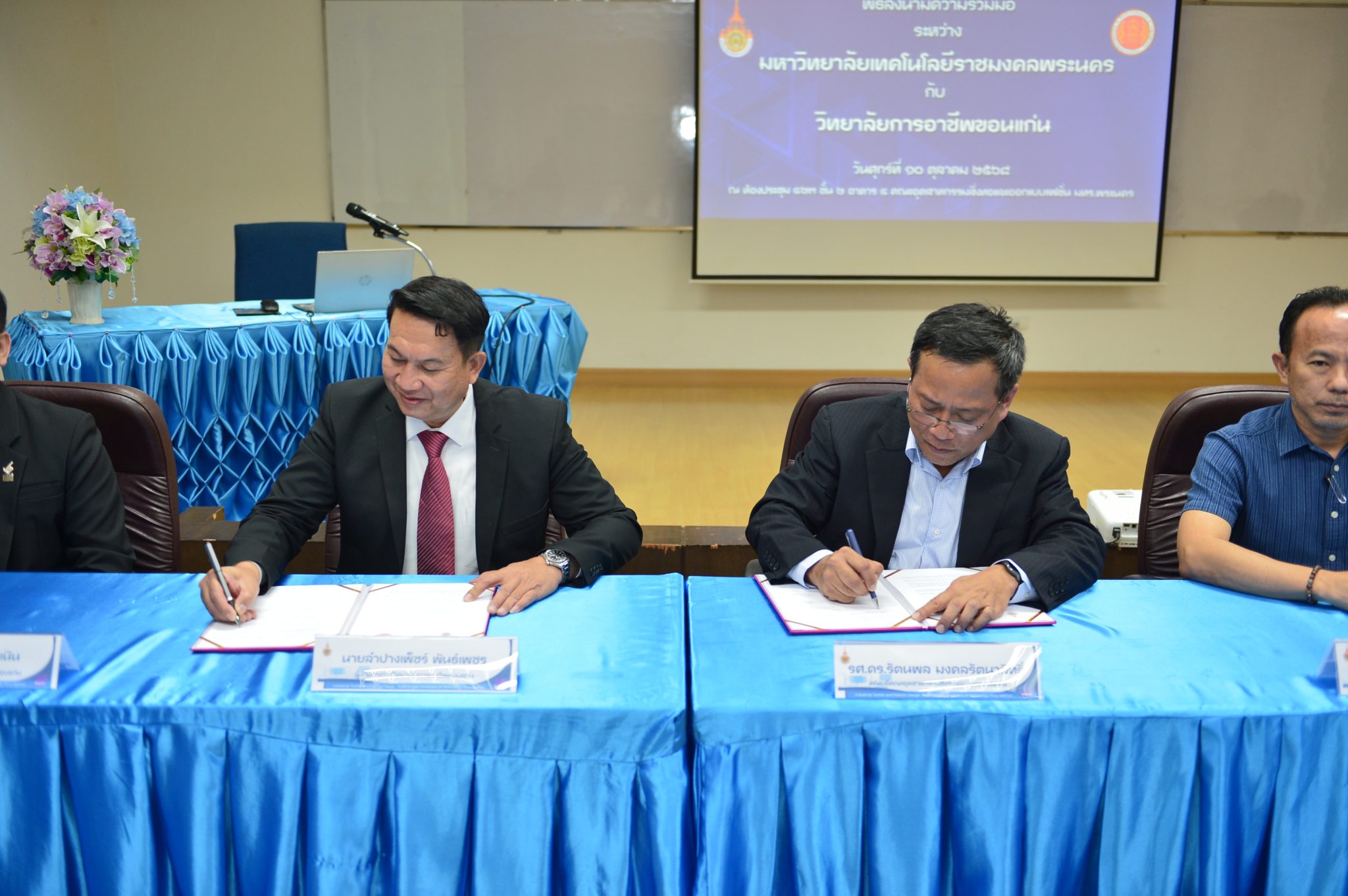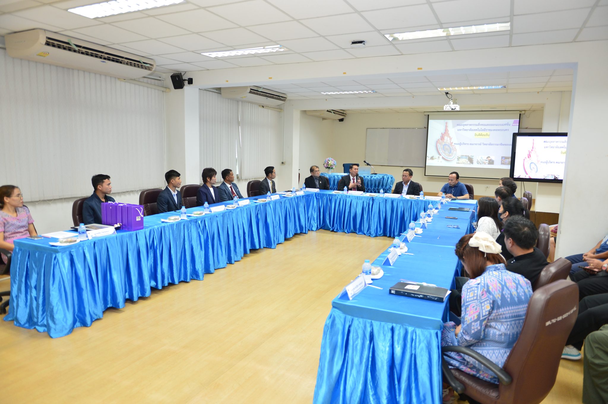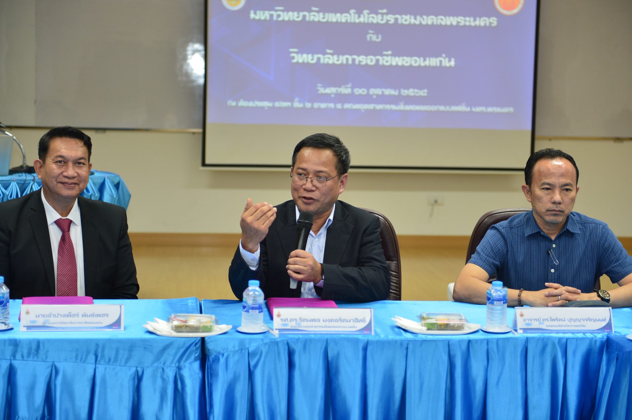 วันที่ 10 ตุลาคม 2568 รศ.ดร. รัตนพล มงคลรัตนาสิทธิ์ พร้อมด้วยรองคณบดีฝ่ายต่างๆ ตลอดจนคณาจารย์และเจ้าหน้าที่ให้การต้อนรับ ผอ.ลำปางเพ็ชร์ พันธ์เพชร ทีมบริหาร คณาจารย์ จากวิทยาลัยการอาชีพขอนแก่น เพื่อลงนามความเข้าใจ (MOU) ระหว่างคณะอุตสาหกรรมสิ่งทอและออกแบบแฟชั่น มหาวิทยาลัยเทคโนโลยีราชมงคลพระนคร และวิทยาลัยการอาชีพขอนแก่น ณ คณะอุตสาหกรรมสิ่งทอและออกแบบแฟชั่น