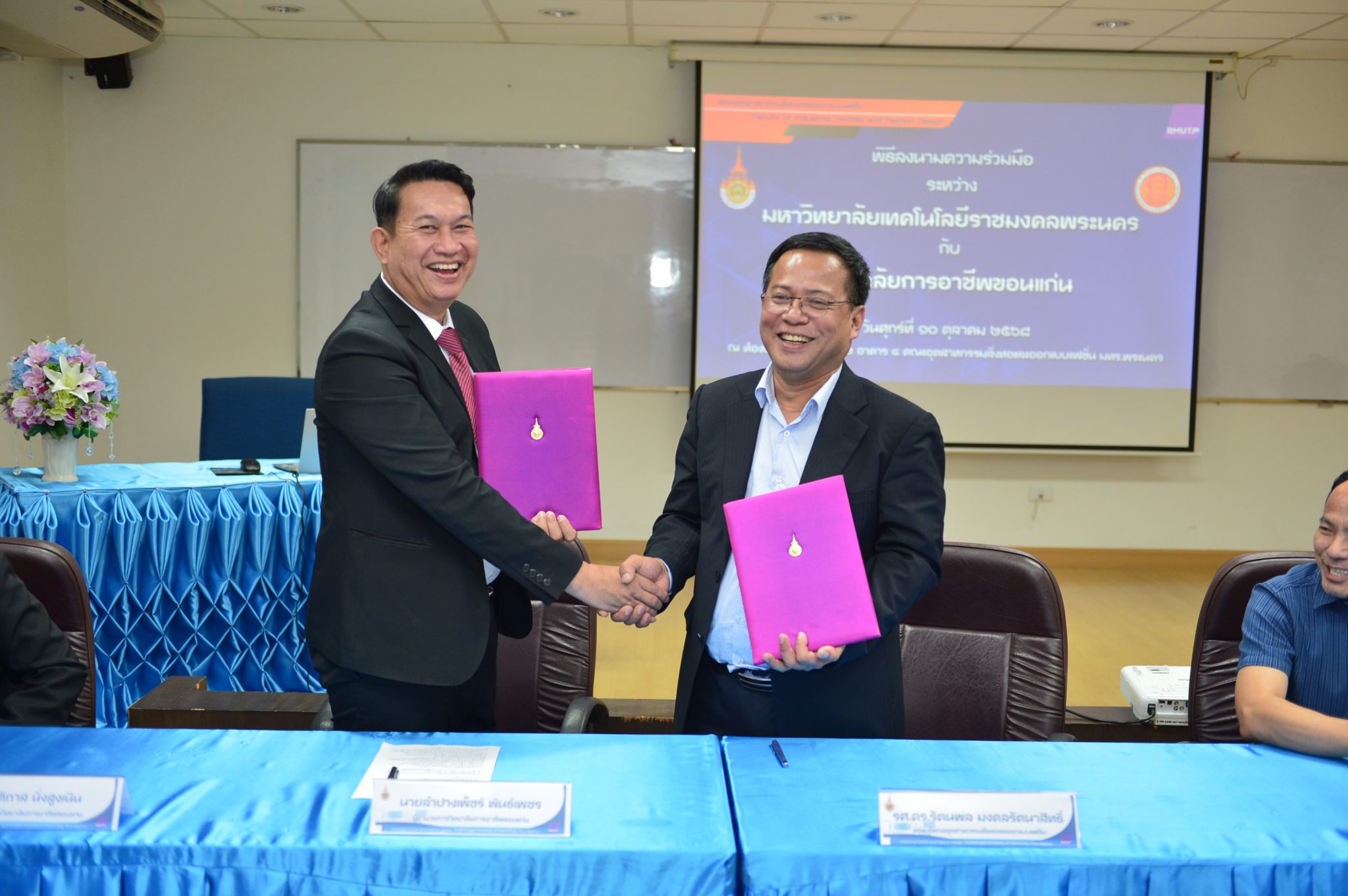 โดยมีวัตถุประสงค์เพื่อส่งเสริมการพัฒนาศักยภาพของนักเรียน นักศึกษา และบุคลากรของทั้งสองฝ่ายในด้านอุตสาหกรรมสิ่งทอและแฟชั่น ผ่านการแลกเปลี่ยนองค์ความรู้ เทคโนโลยี และการใช้ทรัพยากรร่วมกัน เพื่อร่วมกันพัฒนางานวิจัย นวัตกรรม และองค์ความรู้ใหม่ที่สามารถเพิ่มขีดความสามารถในการแข่งขันของผู้ประกอบการสิ่งทอให้สอดคล้องกับแนวคิด “เมืองไหมชนบท” ซึ่งเป็นหมุดหมายแห่งการเรียนรู้ด้านเส้นใยไหมในระดับโลก อีกทั้งเพื่อเพิ่มโอกาสทางการศึกษาต่อระดับปริญญาตรีแก่ผู้เรียนจากวิทยาลัยการอาชีพขอนแก่น ให้สามารถเข้าศึกษาต่อในสาขาวิชาด้านสิ่งทอและแฟชั่นของมหาวิทยาลัยเทคโนโลยีราชมงคลพระนคร รวมถึงเพื่อส่งเสริมการพัฒนาคุณวุฒิของบุคลากรของวิทยาลัยการอาชีพขอนแก่น โดยเปิดโอกาสให้เข้าศึกษาต่อในระดับมหาบัณฑิต สาขาวิชาเทคโนโลยีสิ่งทอ เครื่องนุ่งห่ม และแฟชั่น อย่างเป็นระบบและยั่งยืน